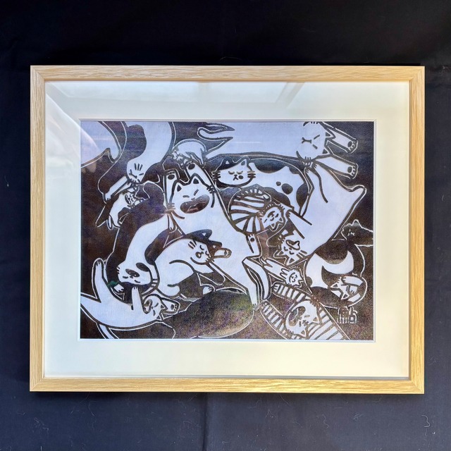 徳永鮎子 個展「しろねこくんのふゆやすみ展」販売作品「みんなねこ親方が大好き」