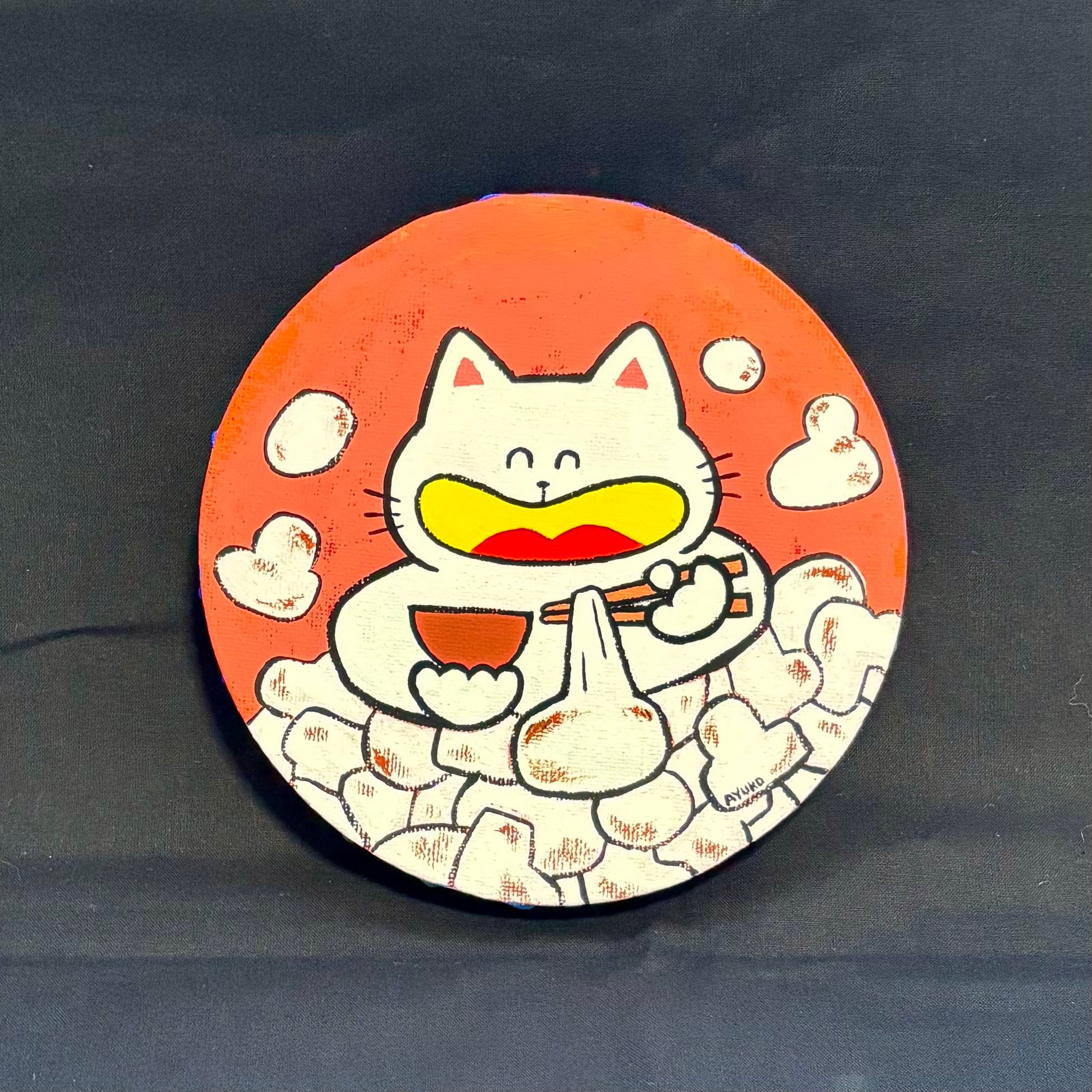 徳永鮎子 個展「しろねこくんのふゆやすみ展」販売作品「お餅フィーバー」