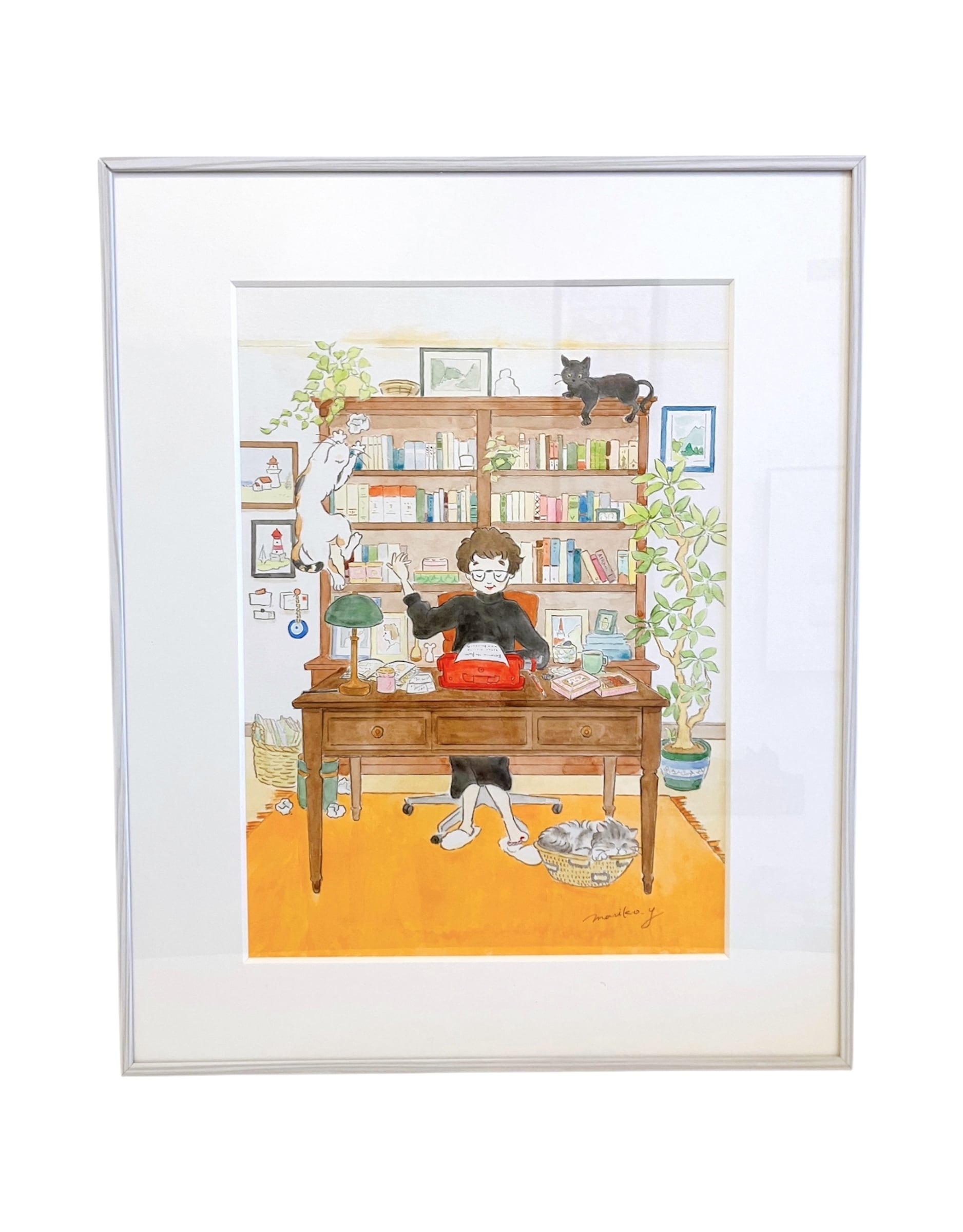 ひるねこBOOKS 10周年記念展 Part.1 販売作品 やまぐちまりこ「女流作家のアトリエ」の商品説明