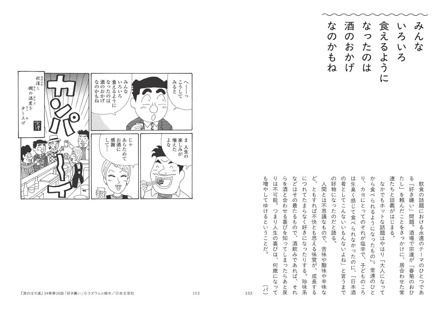 累計発行部数800万部、連載30年の長寿グルメ漫画『酒のほそ道』1巻~最新58巻(絶賛発売中)から選び抜いた人生をシアワセにする116の言葉。