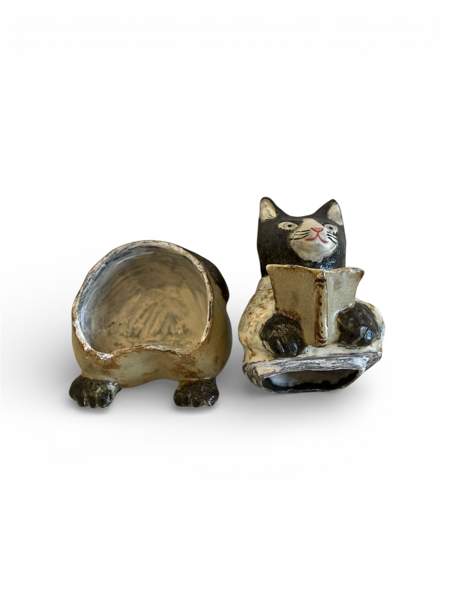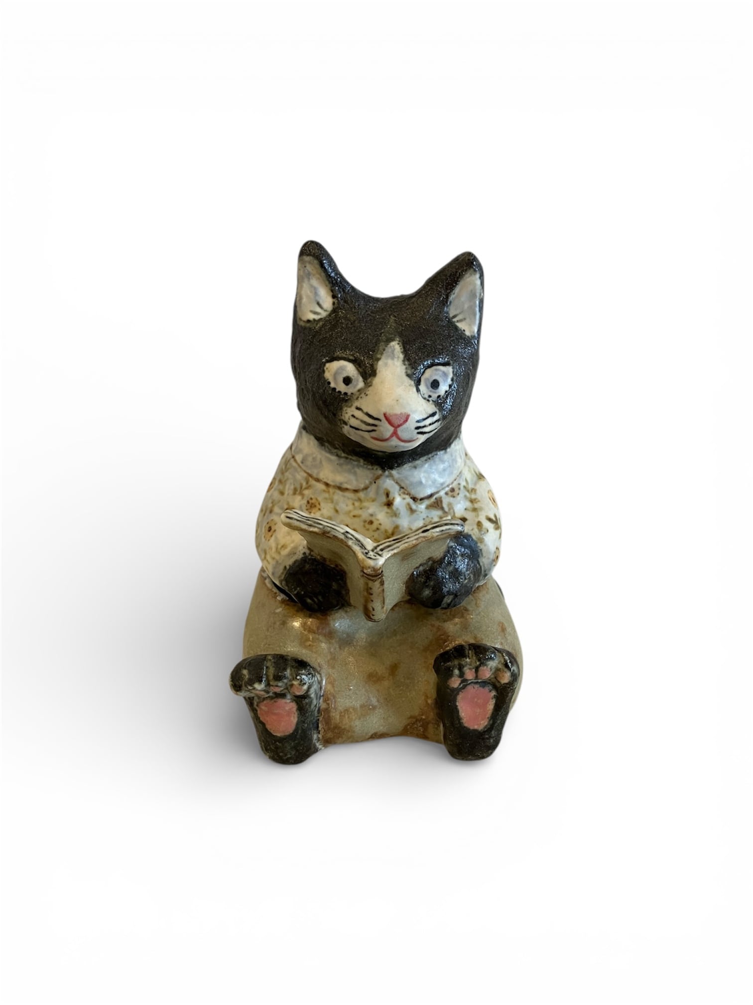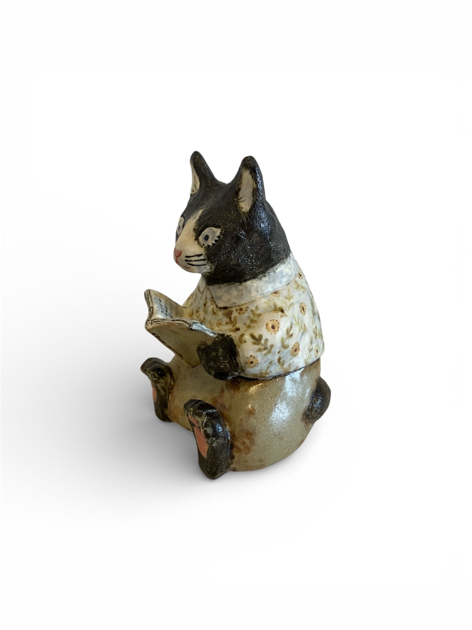 ひるねこBOOKS 10周年記念展 Part.1 販売作品 坂口友佳子「本読み猫さん 小物入れ」の商品説明