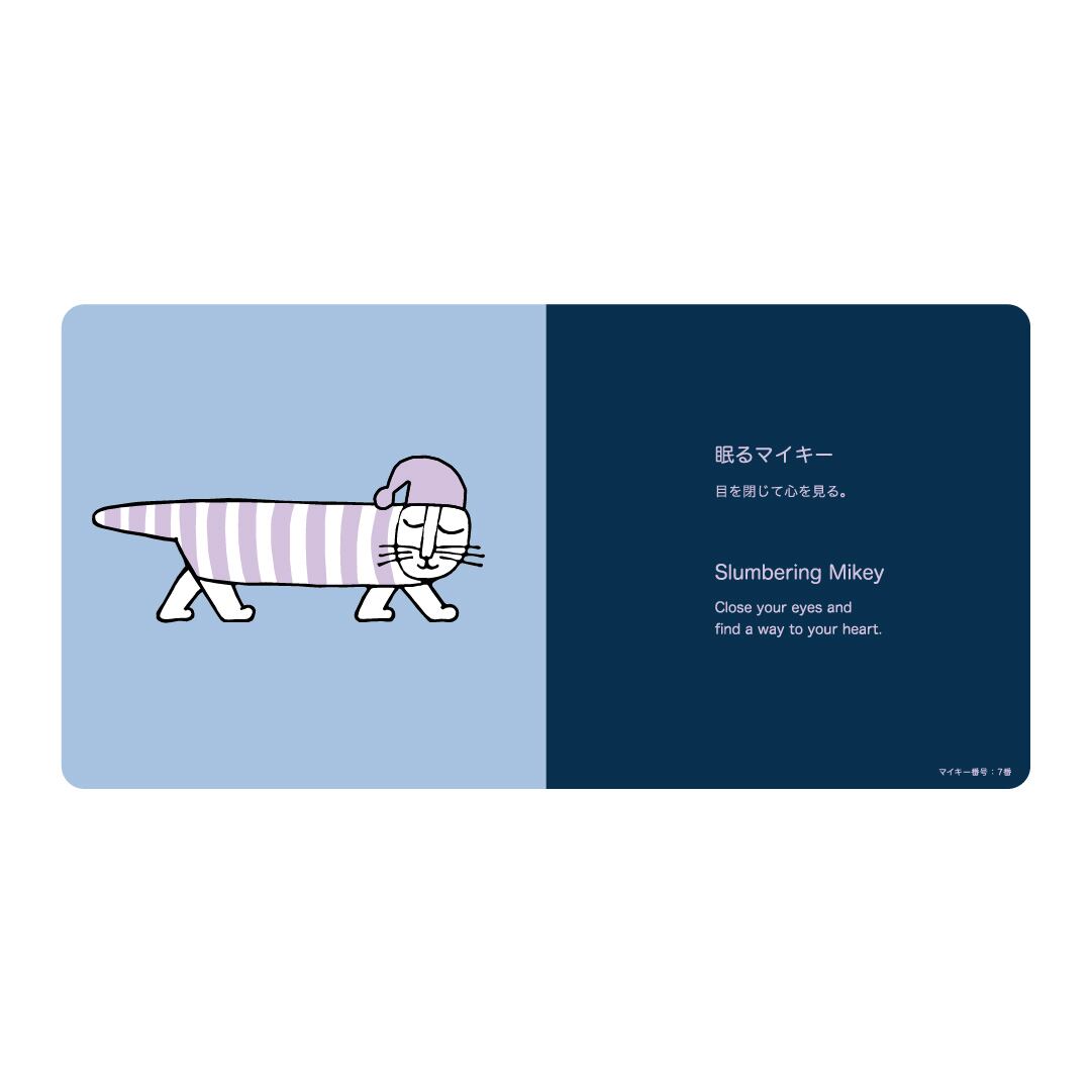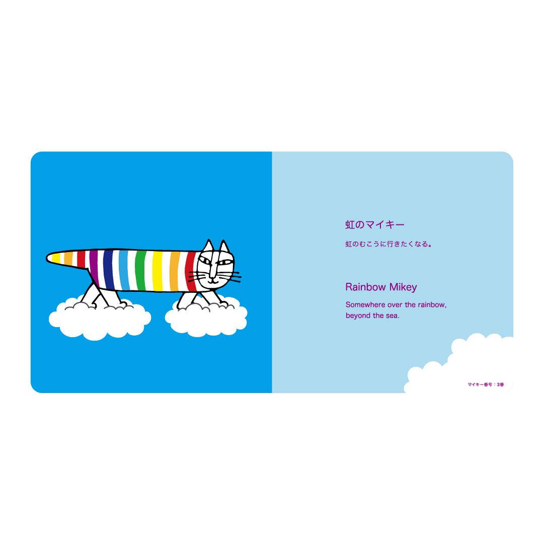これまで生まれてきたマイキーとこの本のために生まれたマイキーから10匹を選んで1冊の本を作りました。見開きページの左に1つのマイキーがデザインされ、右ページには簡潔な文章が添えられています。マイキーに託して、私たちを取り巻く大切なことについて考えてみよう、話してみよう、想像を膨らませてみよう、という意図で作られています。図鑑の形を借りたメッセージブックとして、小さなお子さまから大人まで、きっと幅広く楽しんでいただけるはずです。シリーズ第二弾も計画中。ご期待ください!